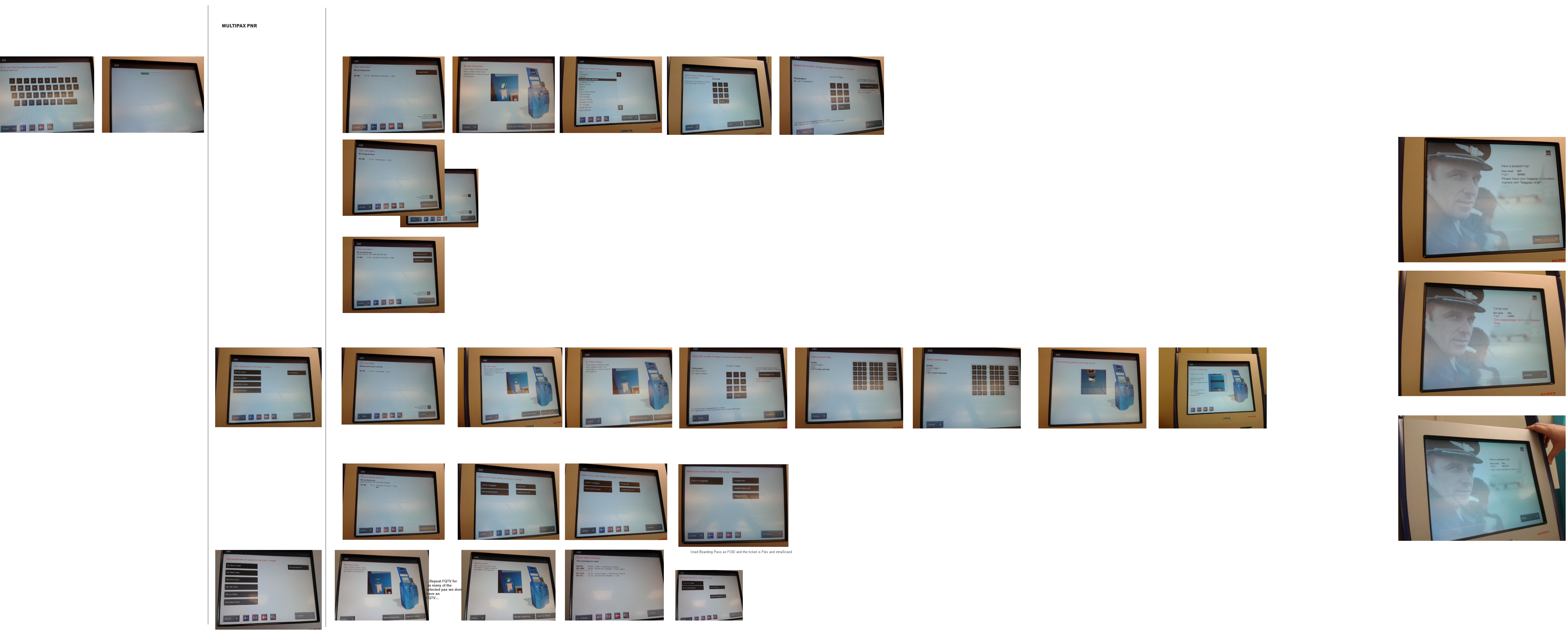 I started by testing out and analysing the existing check-in flow at the kiosks and mapping out all the different use scenarios and setting down the user requirements. In parallel I gathered all the business requirements from the internal stakeholder and the two tech leads to keep in mind all the technical limitations that are present in the check – in systems.