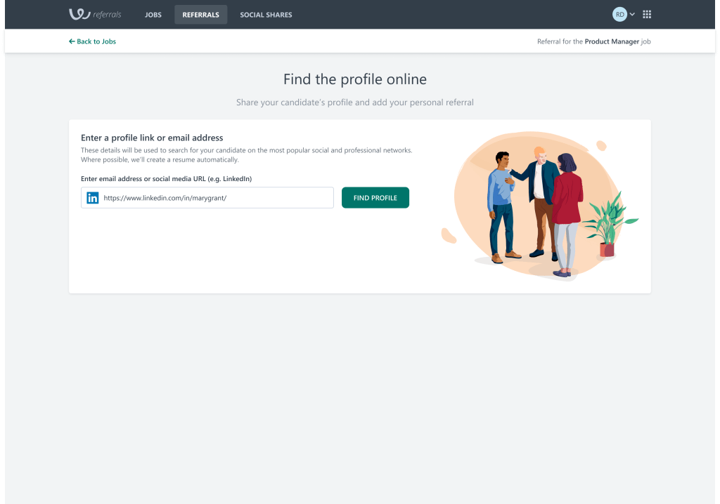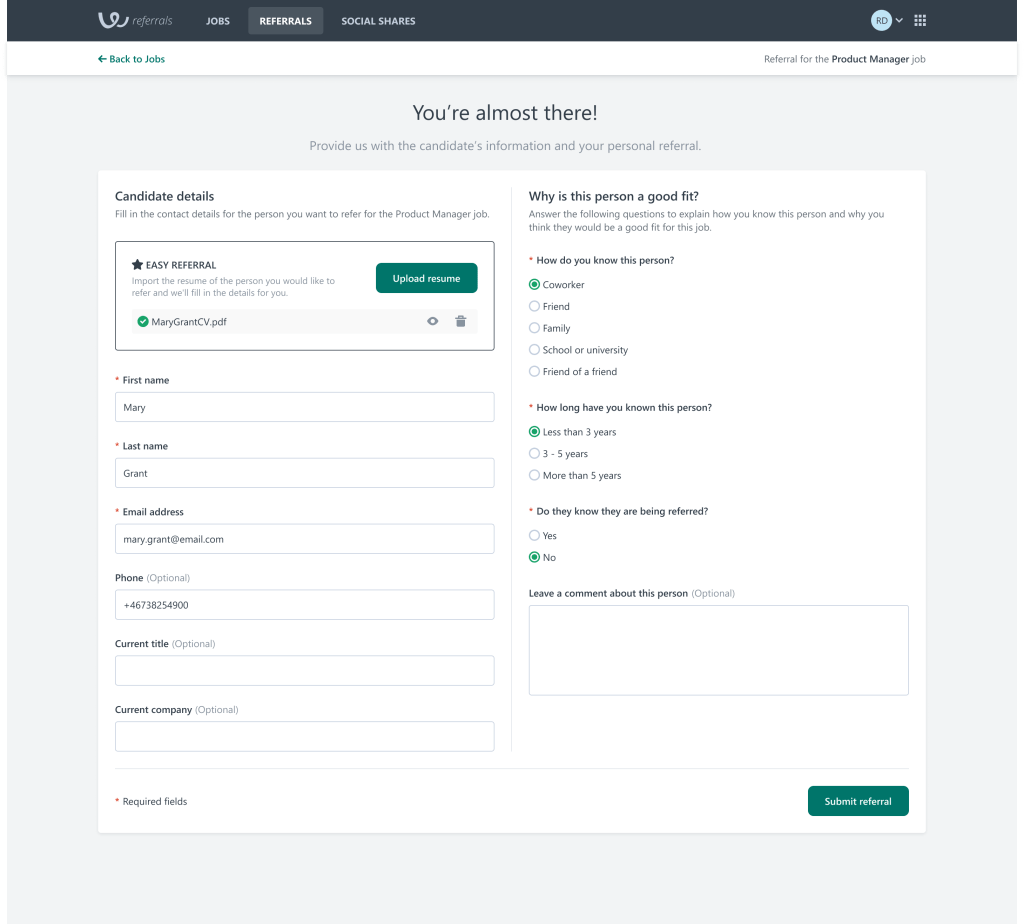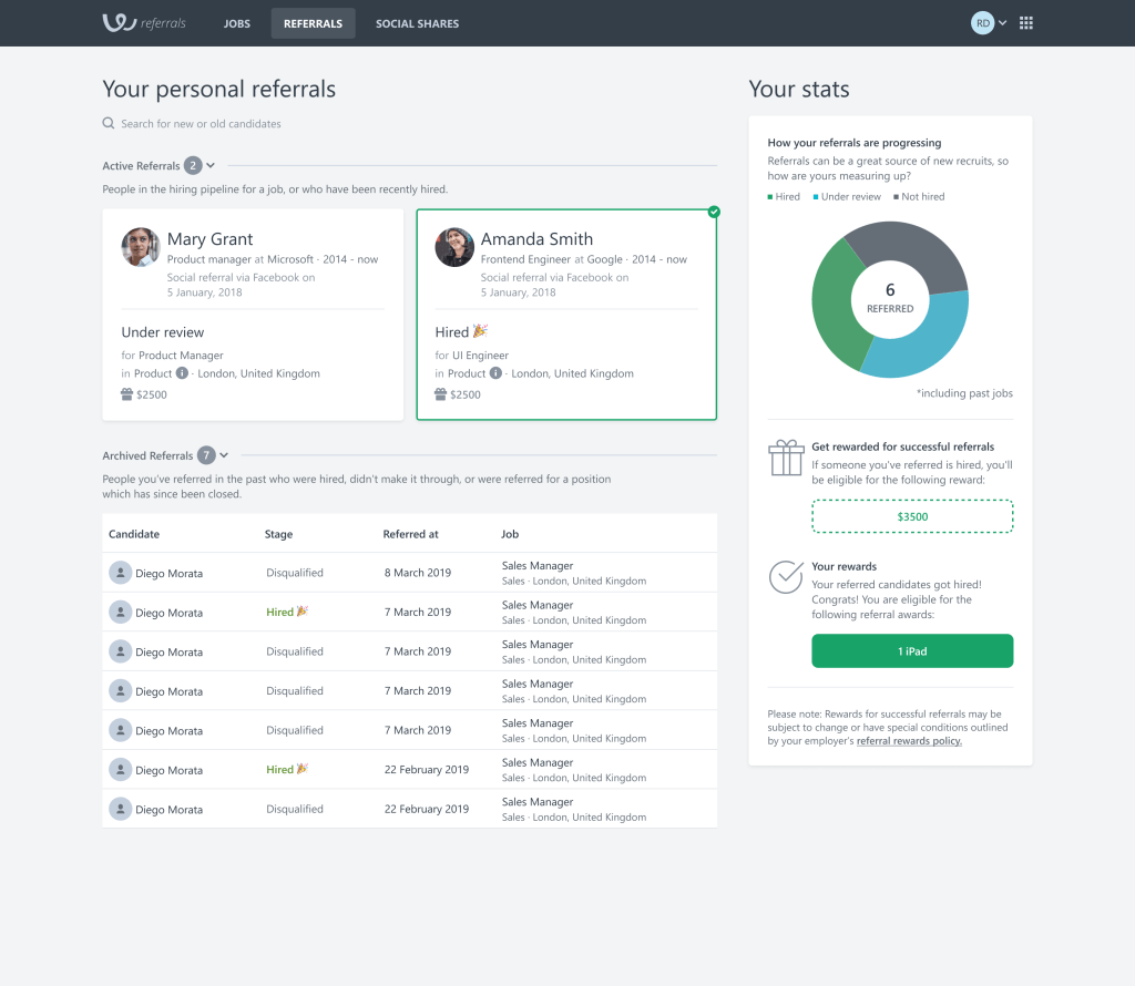 Project name: Workable Referrals (https://www.workable.com/features/employee-referral)